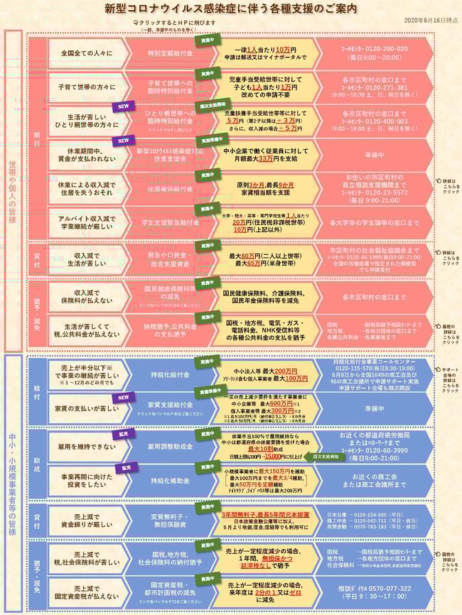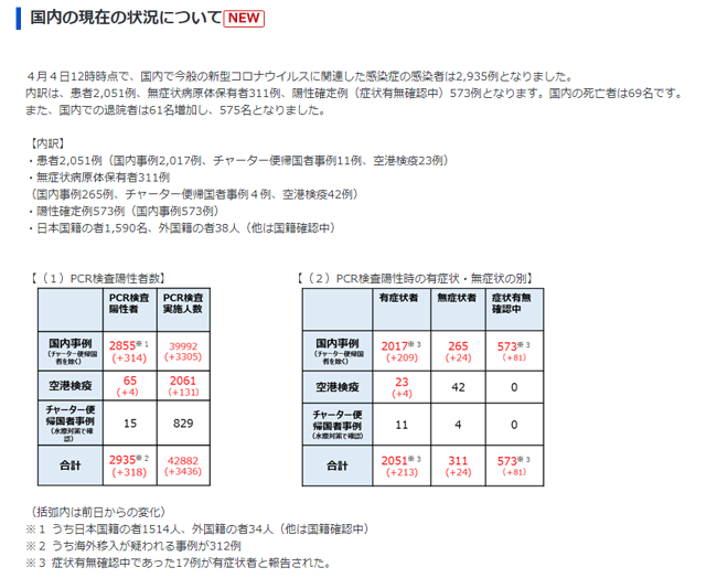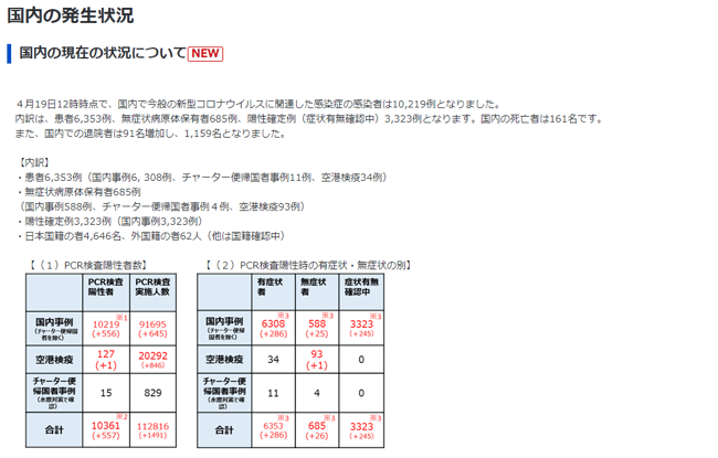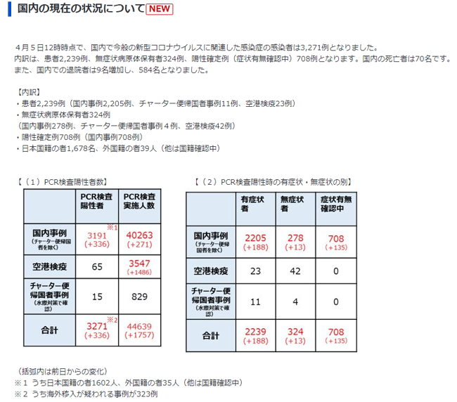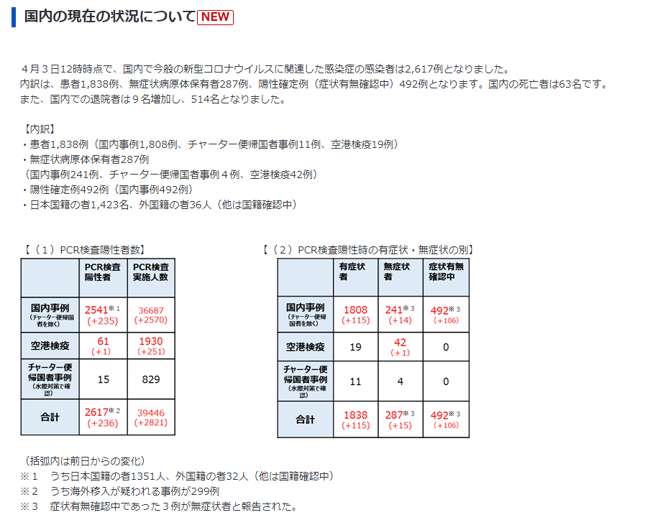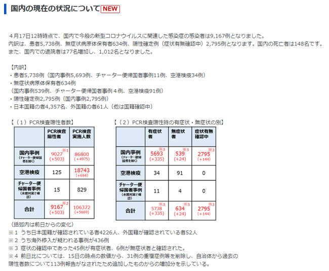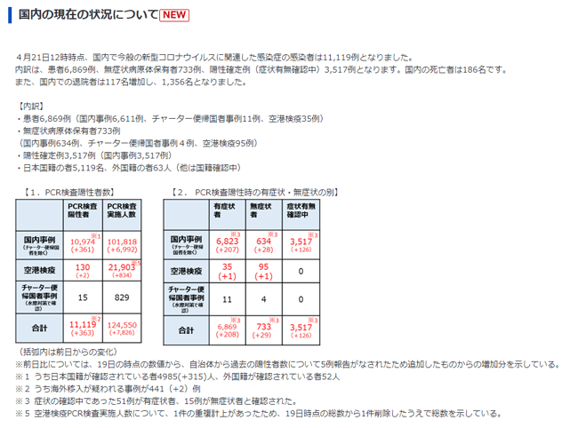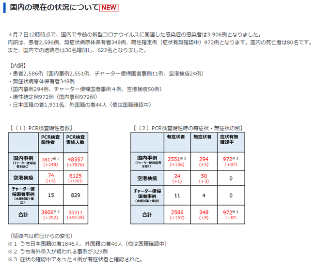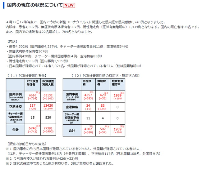 内閣官房HPにある新型コロナウィルス対策ページに情報が公開されておりますのでご確認ください。下記のPDFファイルでも確認いただけます。